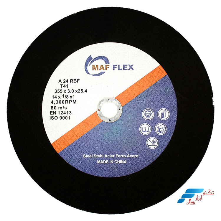 شرکت ماف فلکس، تولید کننده انواع محصولات صفحه سنگ MAF می باشد. این شرکت در کشور چین فعالیت می کند و جزء محبوب ترین برند های تولید کننده محصولات صفحه سنگ است. مجموعه محصولات برند ماف، از با کیفیت ترین محصولات صفحه سنگ موجود در ایران می باشد. برند ماف در دسته صفحه سنگ، محصولاتی نظیر؛ برش آهن، ساب آهن، پروفیل بر، مینی برش استیل و … را در ابعاد متفاوت به بازار عرضه می کند. صفحه سنگ ماف ، از استحکام و دوام بسیار بالایی در برابر برش قطعات فلزی و سنگی برخوردار است. شرکت ماف توانسته تاییدیه ISO9001 و استاندارد جهانی EN12413 را دریافت کند، که این استاندارد ها اطمینان کامل را به کاربر میدهد که از محصولی با کیفیت استفاده می کنند.